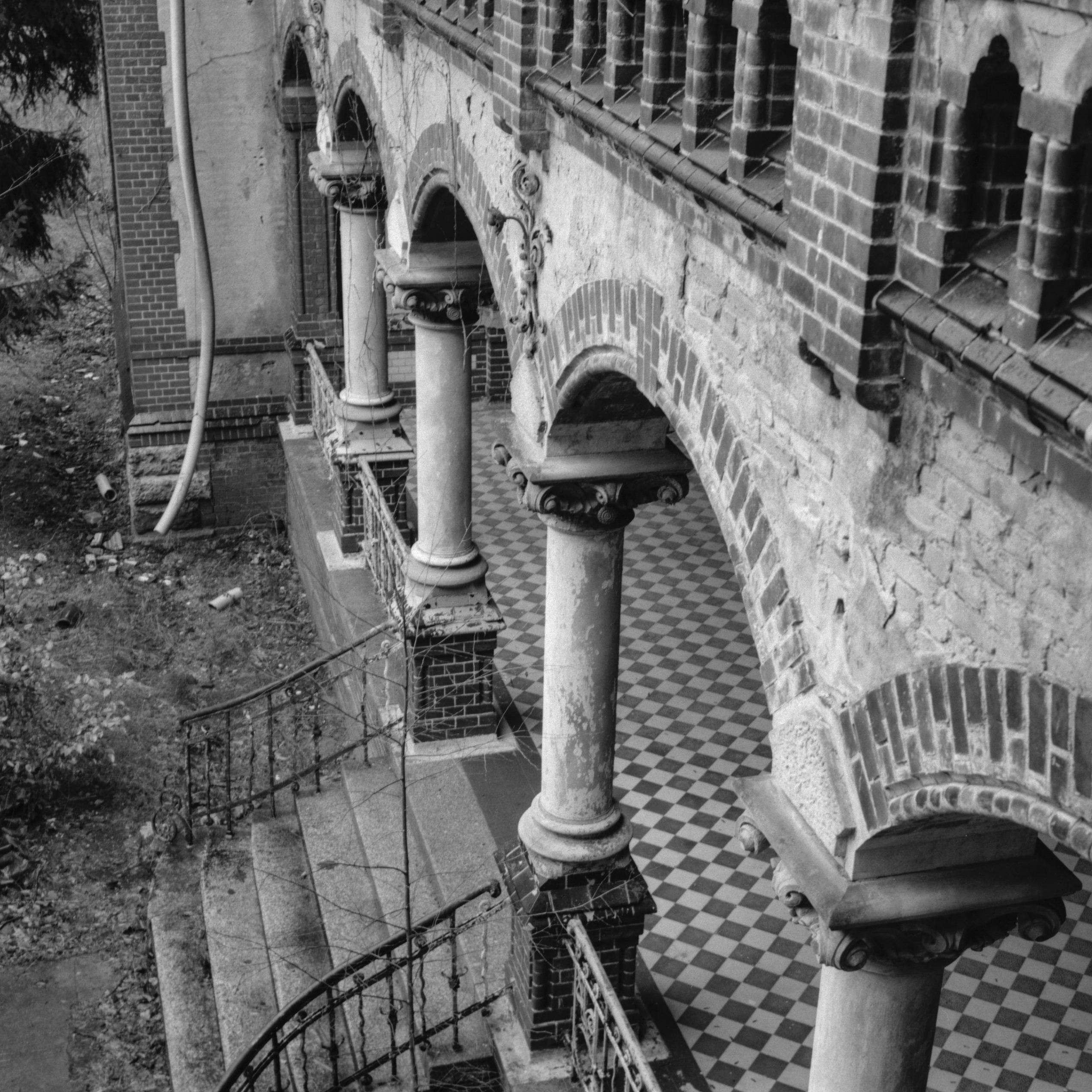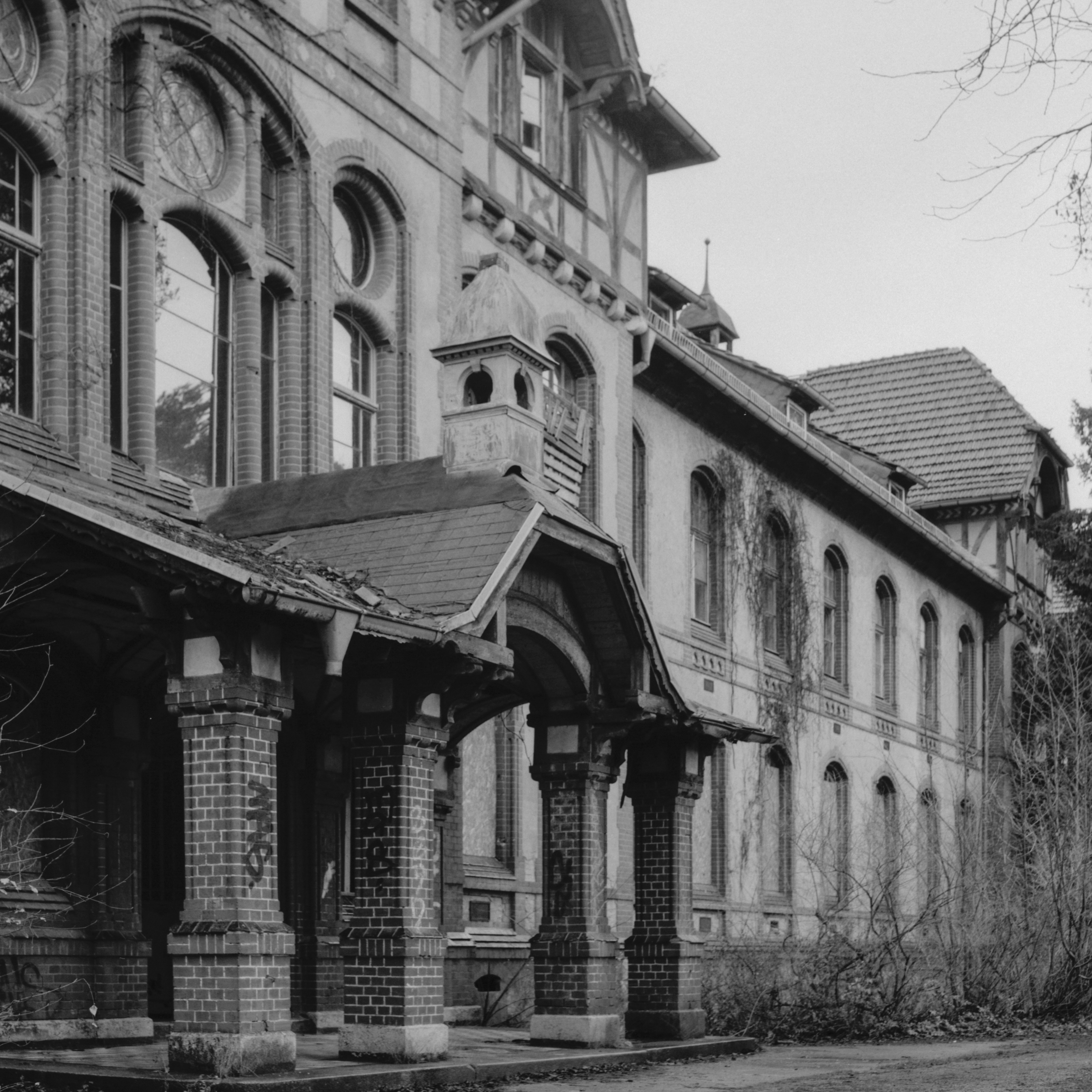Die Beelitz Heilstätten sind kein lost place im eigentlichen Sinne. Sie sind längst wieder bekannt, teilweise saniert und privatisiert, und nur ein kleiner Teil des riesigen Geländes kann noch besichtigt werden. Das geht bis zum Baubeginn am besten mit got2know, und zwar ganz legal. Auch wenn die Gebäude einigermaßen zerfallen sind, ist es kein unheimlicher Ort. Ganz offensichtlich haben die Leute, die dort waren, ihre Spuren hinterlassen. Alle. Die Sprayer und Fotografinnen, die Filmteams und Eventmanager. Es ist viel Kulisse, und drum herum die luftige, helle und etwas altmodische Bäderarchitektur, die an die Ostseebäder erinnert. Das wirkt beinahe heiter, wenn man den Zerfall ausblendet. So schwer ist das auch nicht, denn schon auf der Straßenseite gegenüber stehen die frisch in Stand gesetzten Gebäude des Frauensanatoriums.